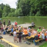 Zum Abschluss luden die Jäger zu einer Jause am Teich. An diesem Waldtag nahmen 40 Kinder, 3 Lehrerinnen und 7 Jäger mit Frauen teil.